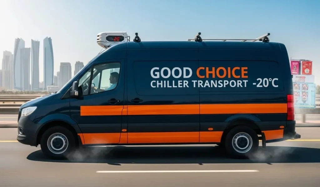 From +8°C dairy logistics to -25°C deep-freeze transport, Good Choice Chiller Transport operates a specialized fleet of GPS-tracked vans and trucks across Abu Dhabi, Dubai, and all the 7 Emirates.